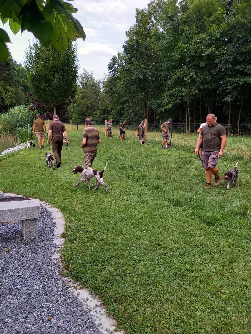 Wie die Welpen schon alle schön Fuß gehen. Kurs Nummer 4. Alles tolle Hundeführer.